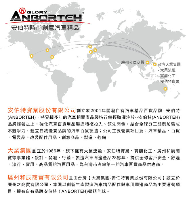 將多年行銷汽車精品的經驗及潮流趨勢的敏感度,積極投入高品質的汽車精品開發。