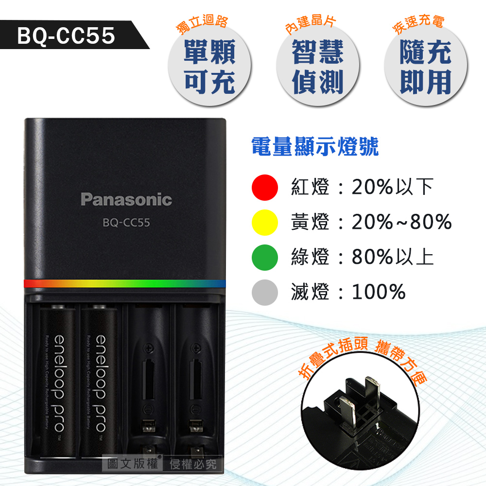 Panasonic eneloop pro 黑鑽疾速智控電池充電組(BQ-CC55充電器+4號6顆)