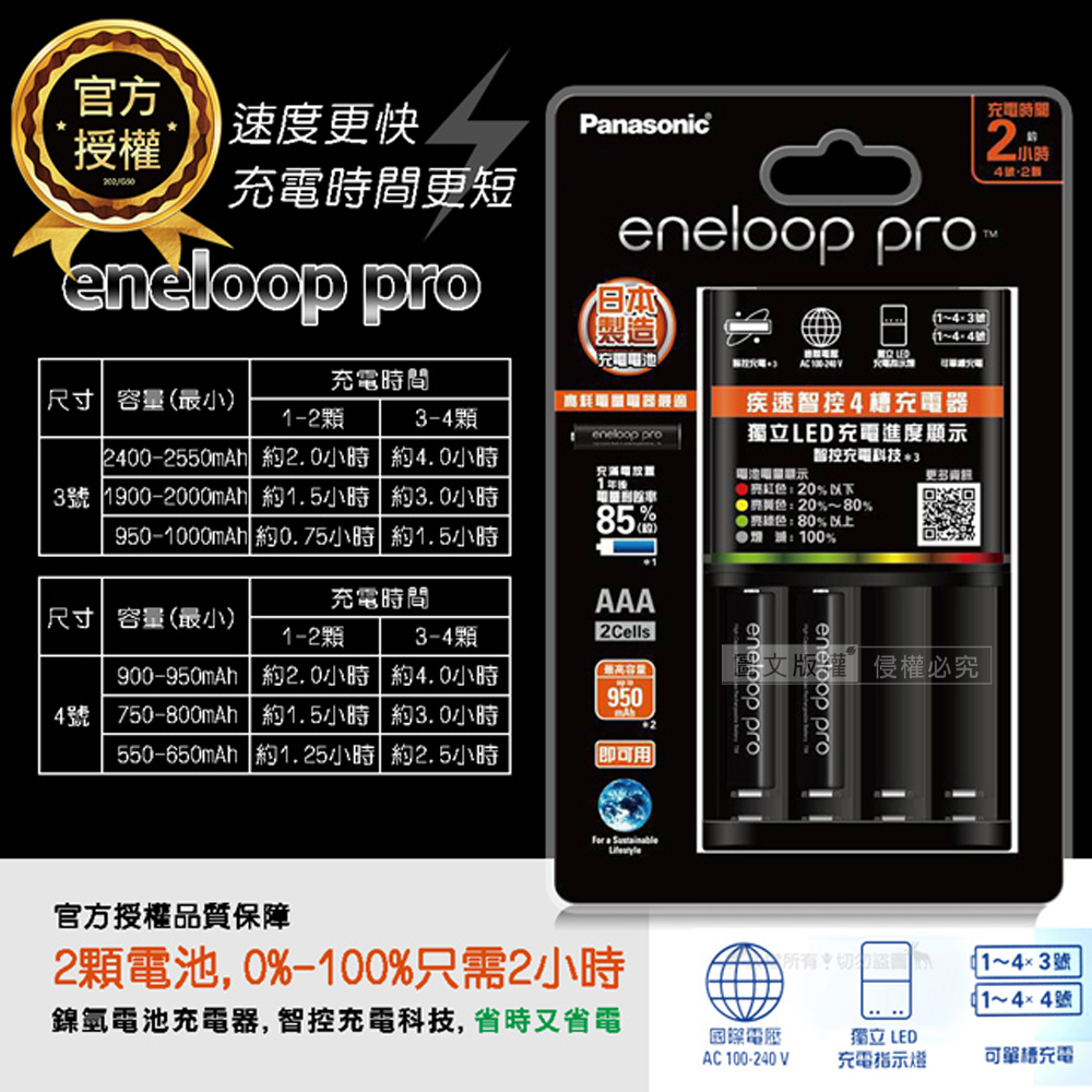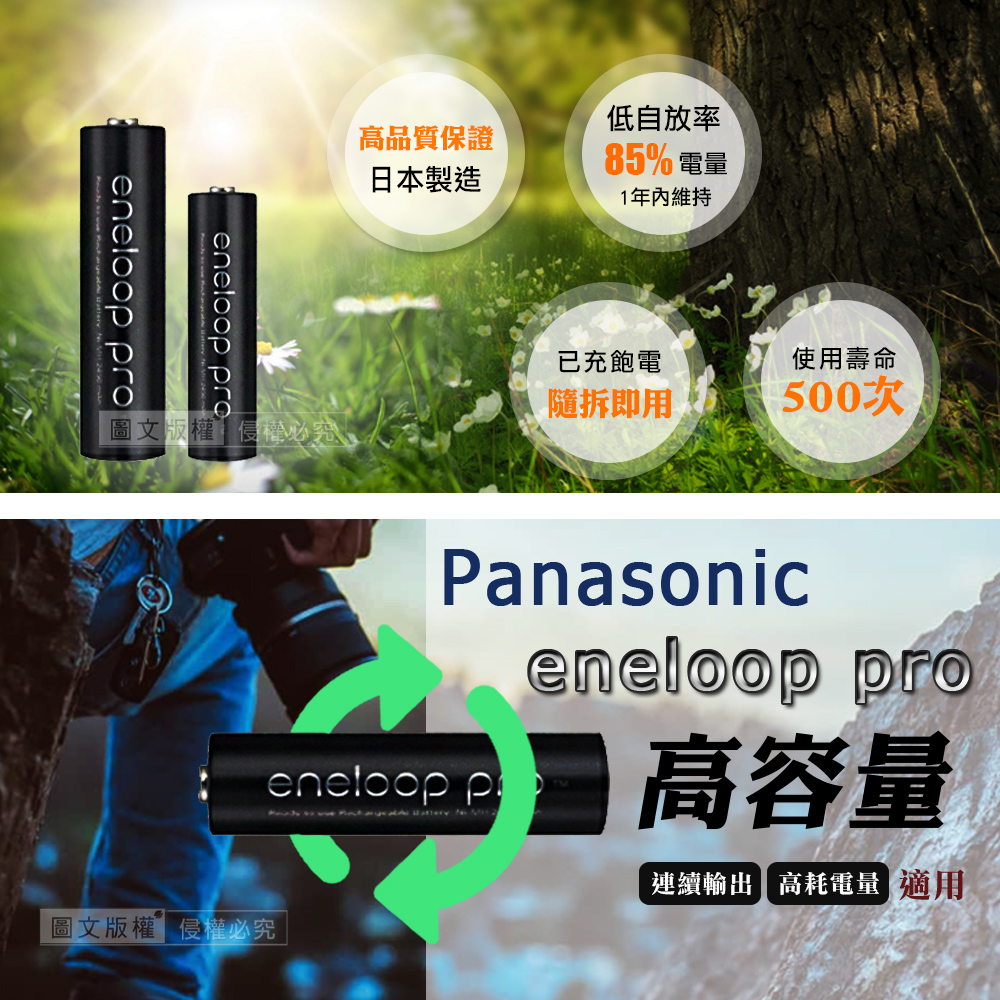 黑鑽款 Panasonic eneloop PRO 低自放充電電池組(3號2550mAh+4號950mAh 各4顆)
