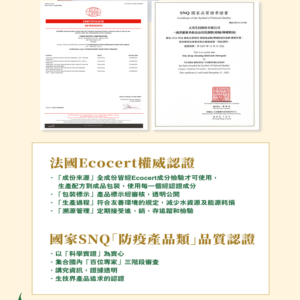 一滴淨 蘆薈多酚食品用洗潔精-柑橘 99.5%綠本元素 法國ECOCERT驗證 1kg 1瓶