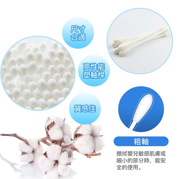 奈森克林 粗軸棉花棒(藍)(200支/袋)台灣製*2包_廠商直送