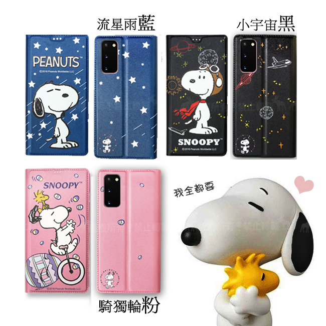 史努比授權正版 三星 Samsung Galaxy S20 金沙灘彩繪磁力手機皮套 (小宇宙黑)