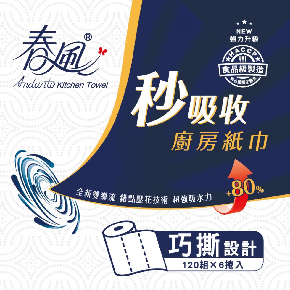 春風 秒吸收廚房紙巾120組*6捲*8串/箱