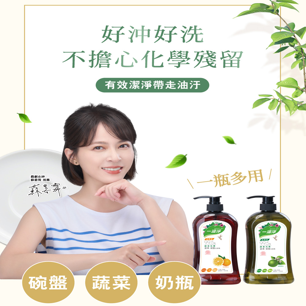一滴淨 蘆薈多酚食品用洗潔精 99.5%植物萃取 含10%蘆薈 溫和不刺激 1kg 1瓶