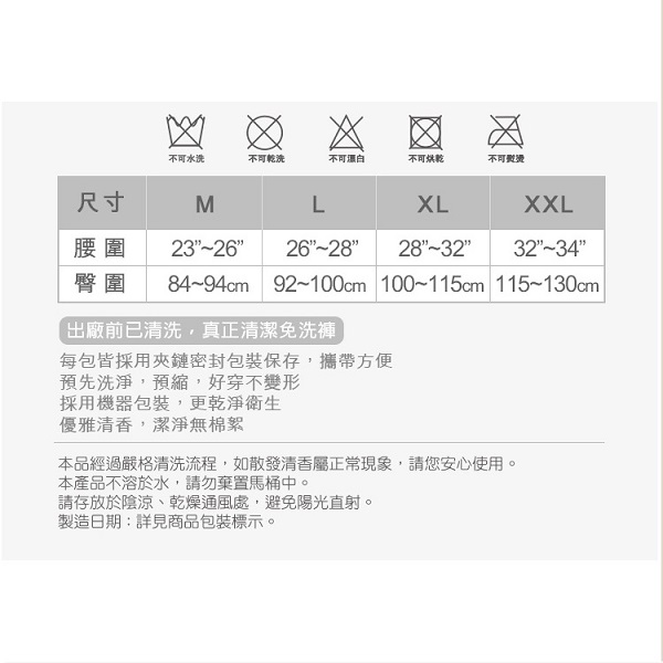 【蓓比適-清秀佳人】低腰三角內褲-已洗淨女性免洗內褲M-XL(5件/包x72入)-箱購