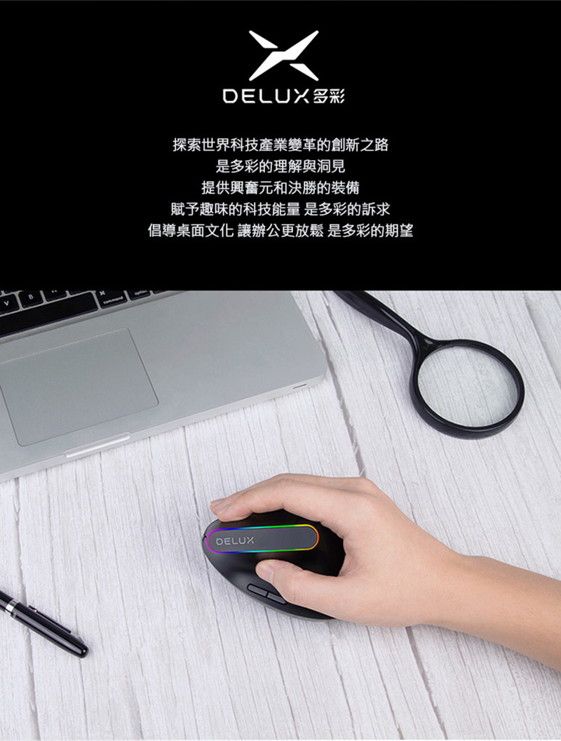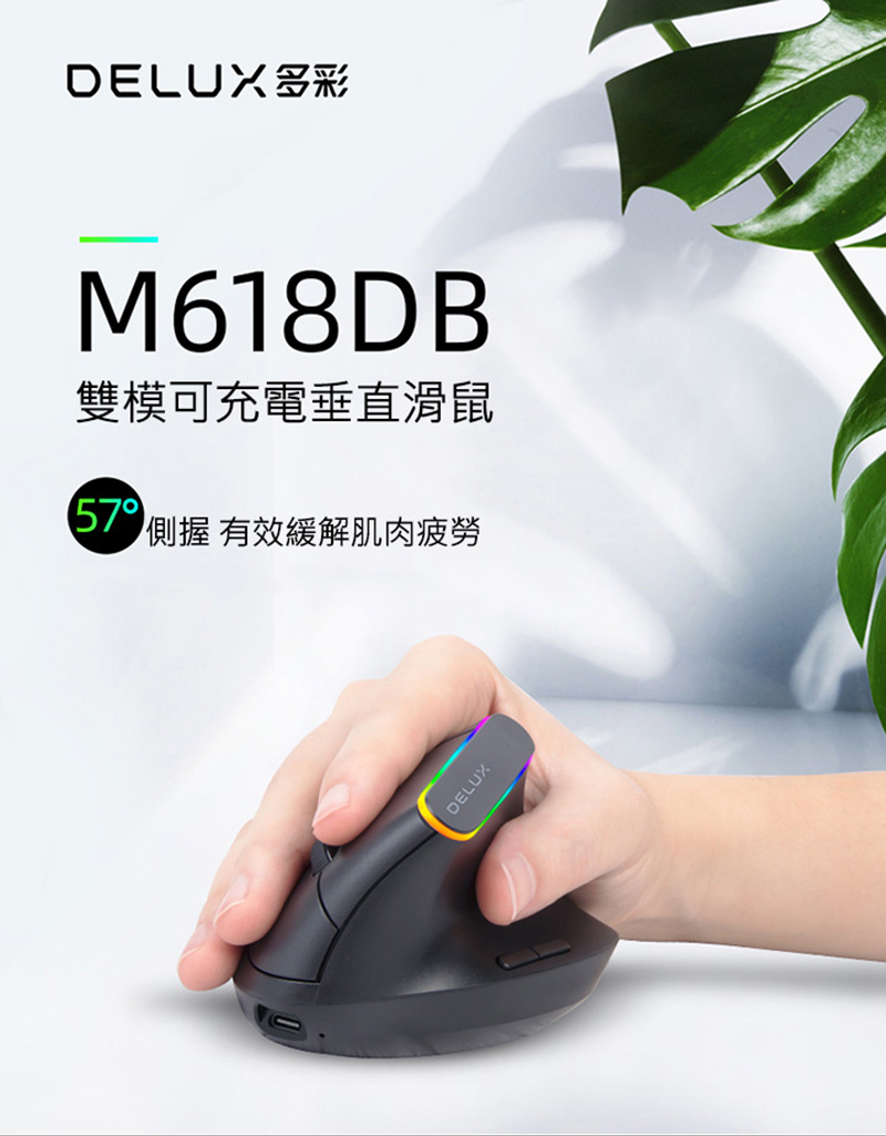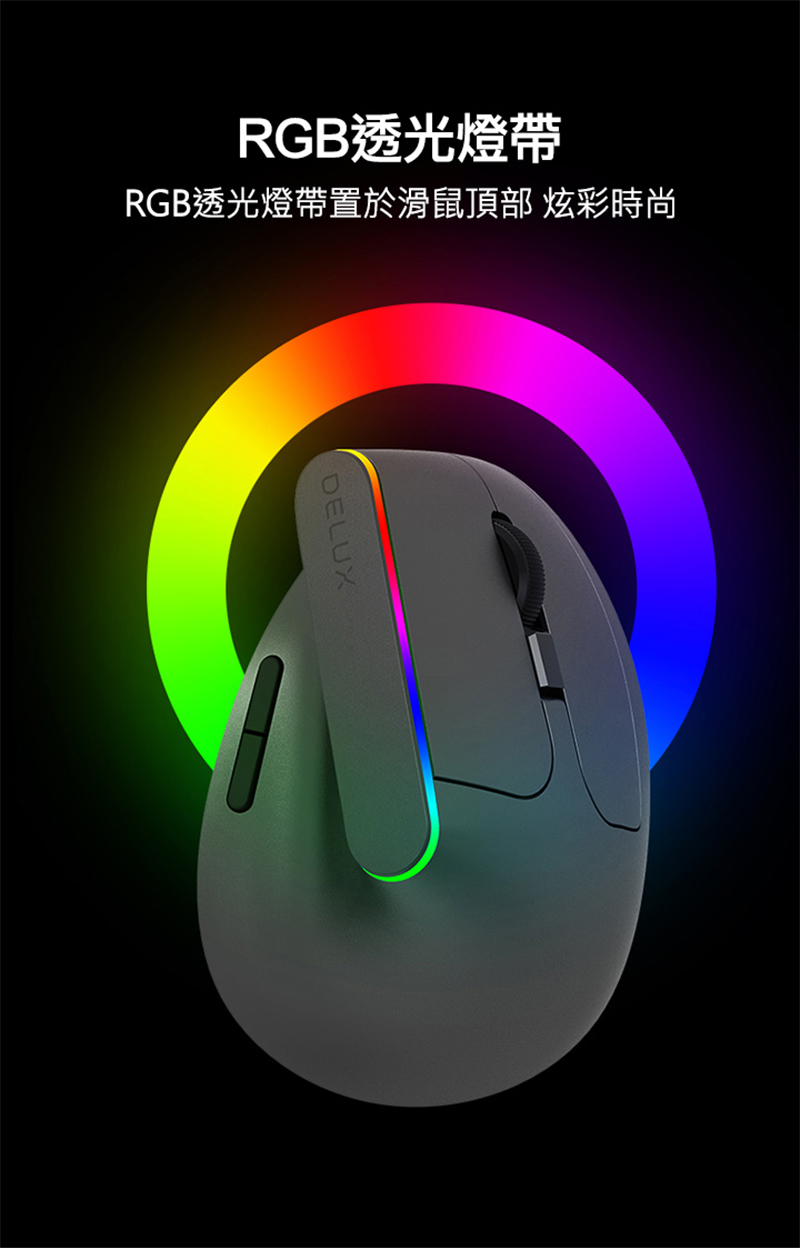 DeLUX M618DB 雙模無線垂直光學滑鼠(黑色)