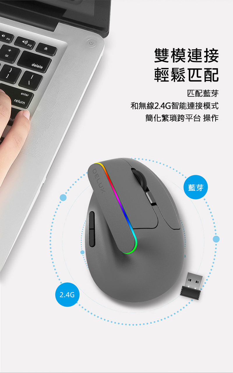 .垂直側握設計,舒適提升,告別滑鼠手