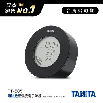 如果您想找一款有時鐘功能、簡約圓形、小巧可愛、可顯示目前濕度狀態是否適中、可紀錄最高、最低之溫度及濕度、可磁吸、可立於桌面的溫濕度計,推薦您這款日本老字號大廠TANITA溫濕度電子時鐘TT-585!