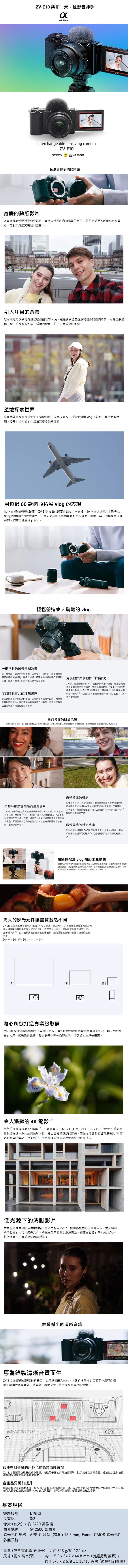 SONY ZV-E10 單機身(白色) 原廠公司貨 微單眼相機 翻轉觸控螢幕 Vlogger機皇
