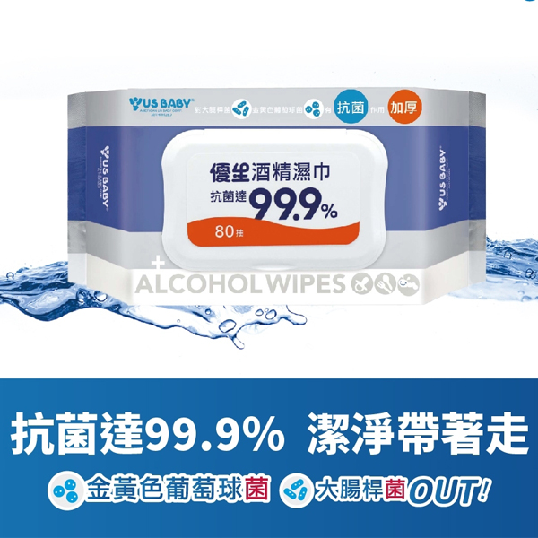 【US BABY 優生】酒精濕巾超厚型加蓋80抽X12包