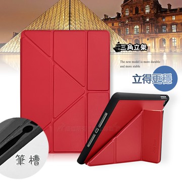 VXTRA氣囊防摔 iPad 10.2吋/iPad Air/Pro 10.5吋 共用 Y折三角立架皮套 內置筆槽(經典黑)