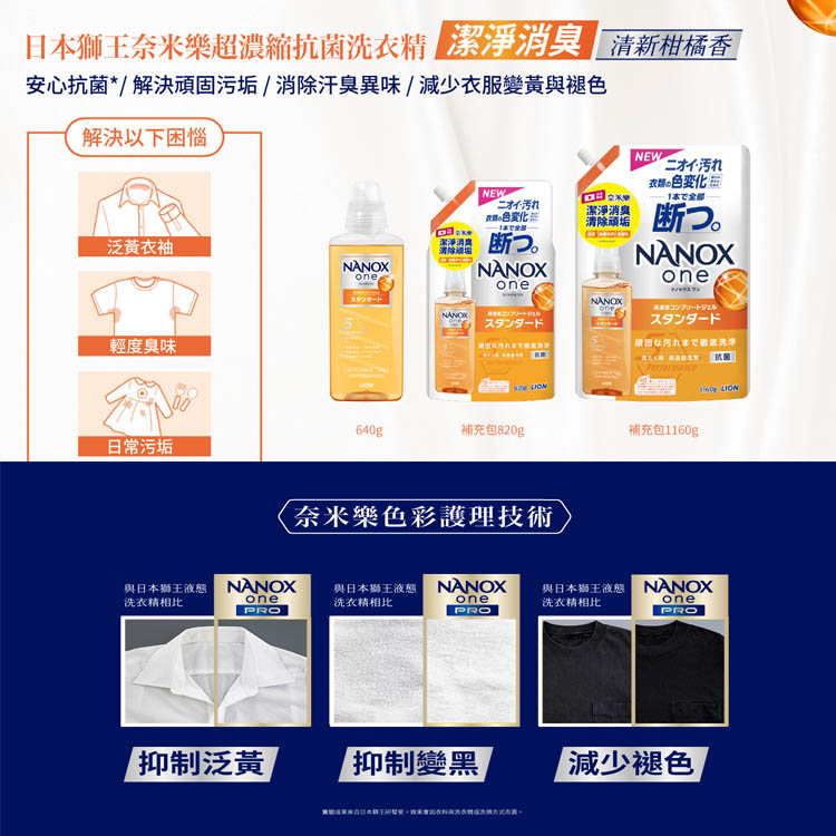 【LION 獅王】奈米樂超濃縮洗衣精640gx1瓶+補充包1160gx3包