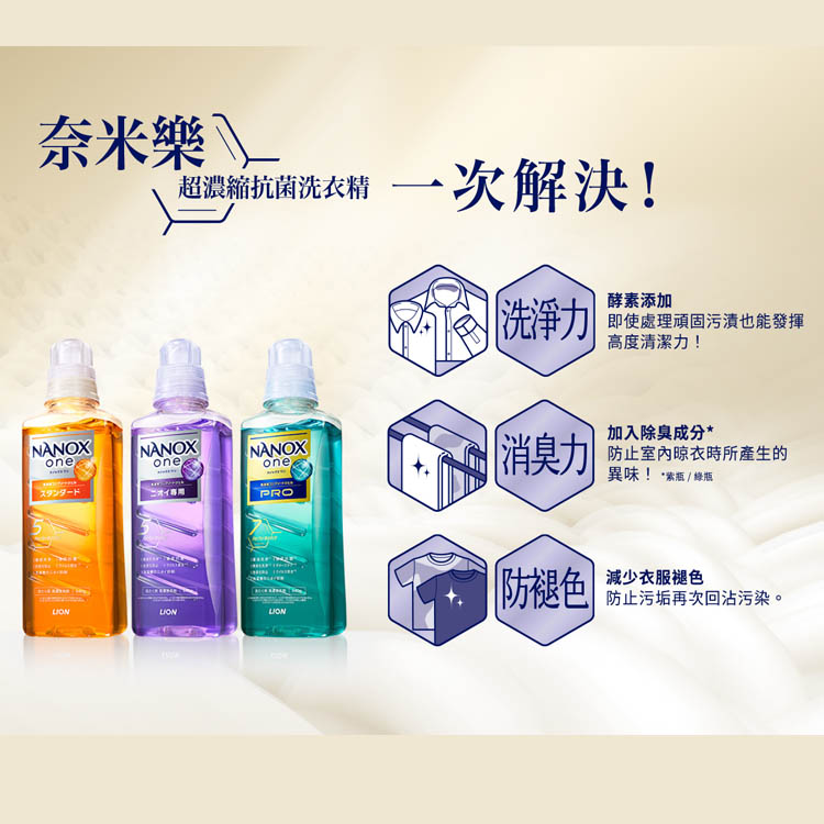 日本獅王奈米樂超濃縮抗菌洗衣精潔淨消臭