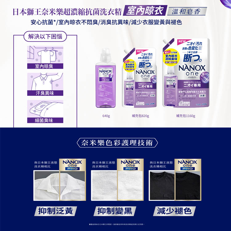 日本獅王奈米樂超濃縮抗菌洗衣精室內晾衣