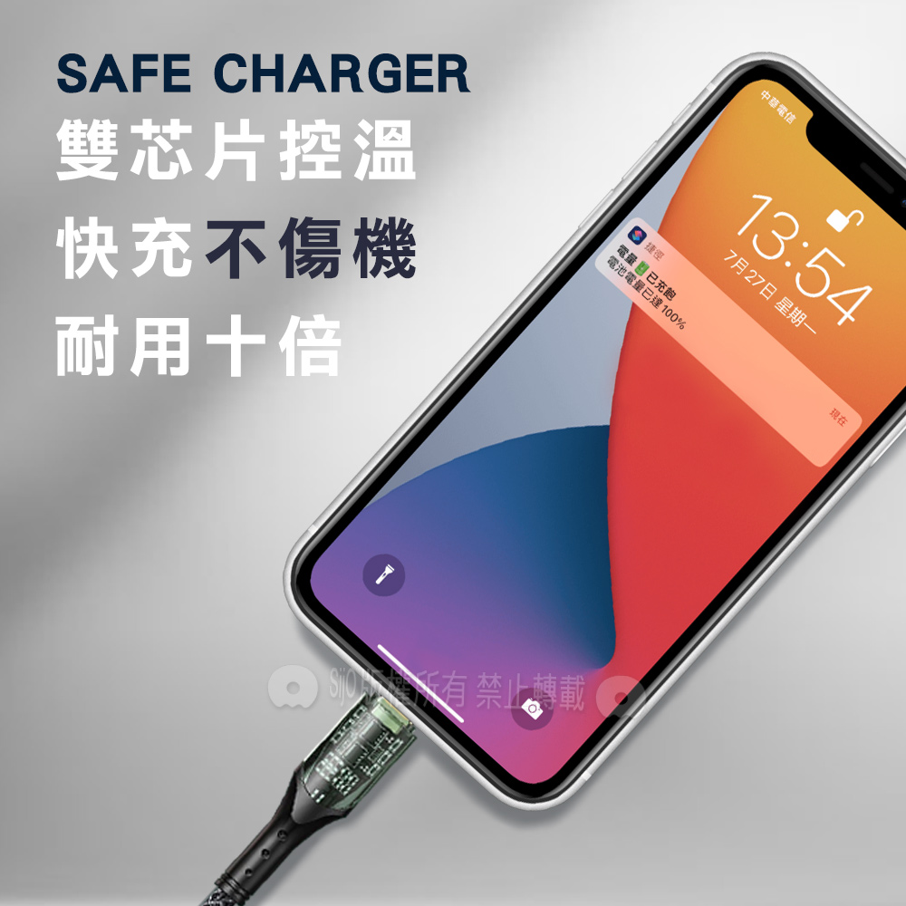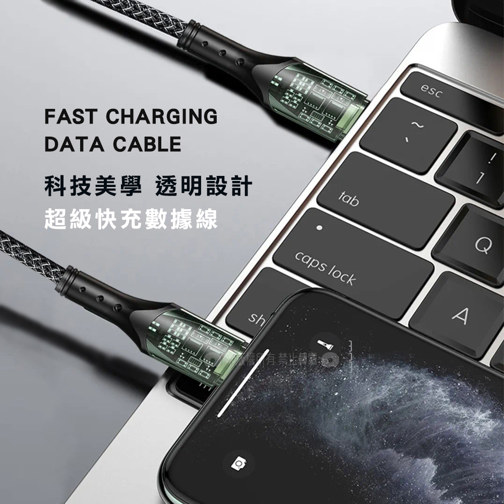 加利王WUW PD20W 透明款超級快充 USB C to Lightning 充電數據線(X186)1M