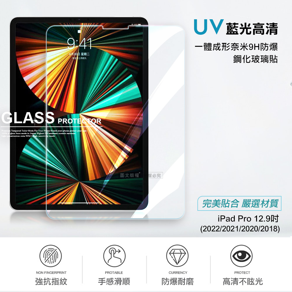 超抗刮 藍光版 iPad Pro 12.9吋 2022/2021/2020/2018通用 高清晰9H鋼化玻璃膜 平板玻璃貼
