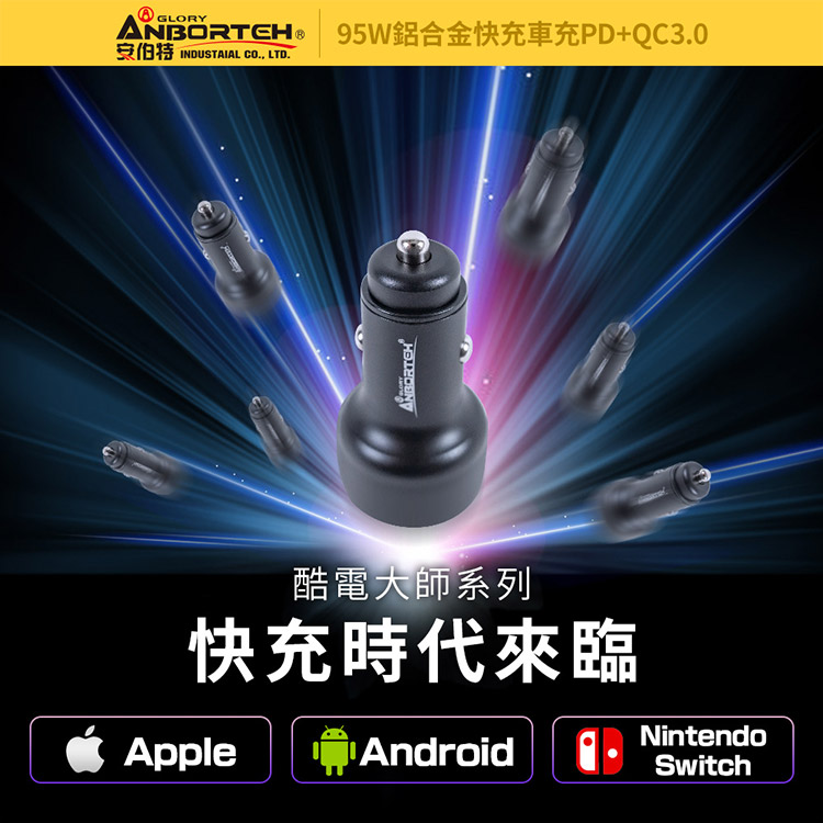 【安伯特】酷電大師 95W鋁合金快充車充PD+QC3.0