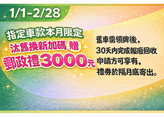 不適用地方性或實體通路其他優惠方.車商連絡時請再詢問清楚.