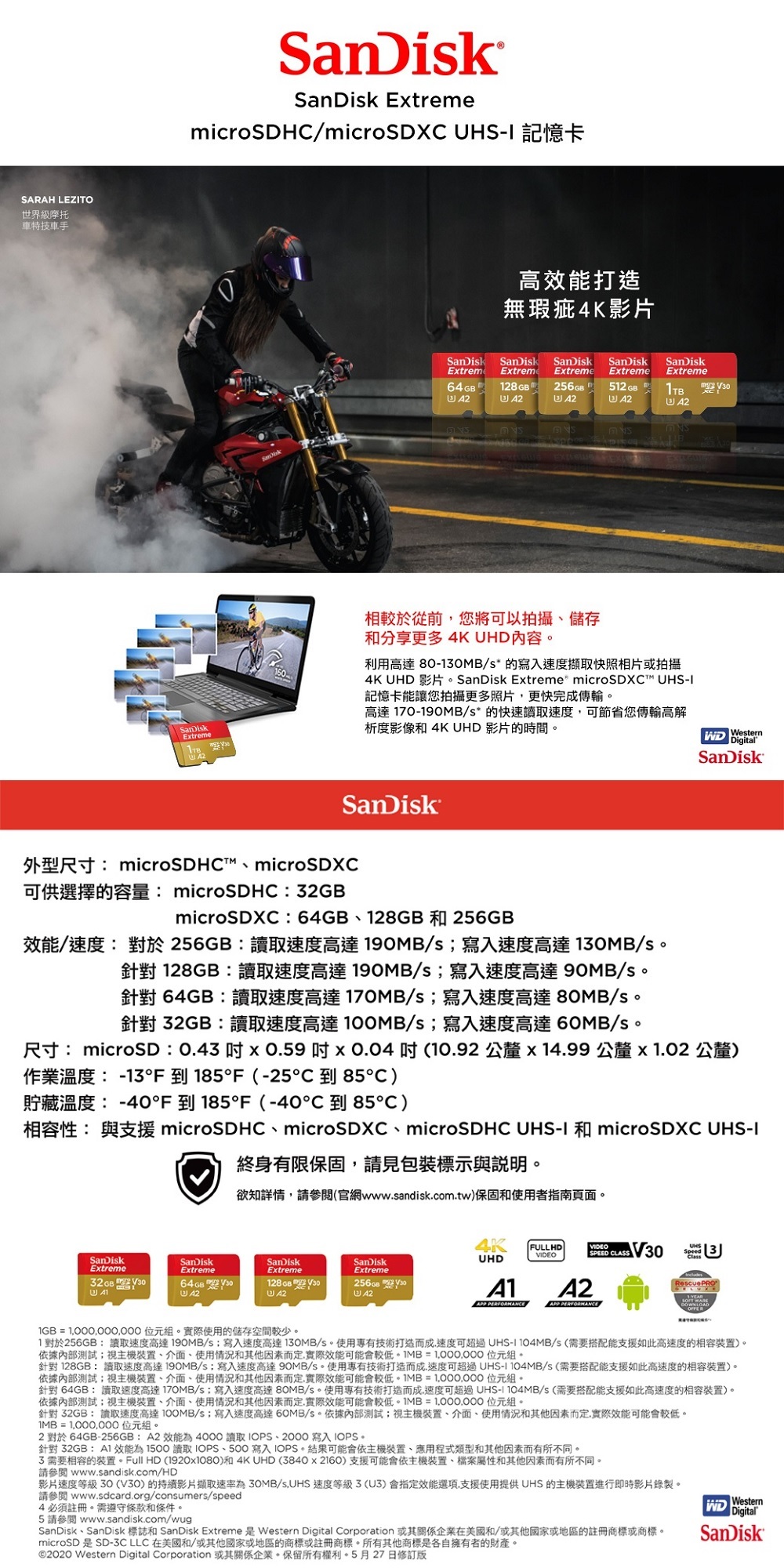 【SanDisk】Extreme 256GB microSDXC UHS-I (V30)(A2) 記憶卡(讀取達190MB)