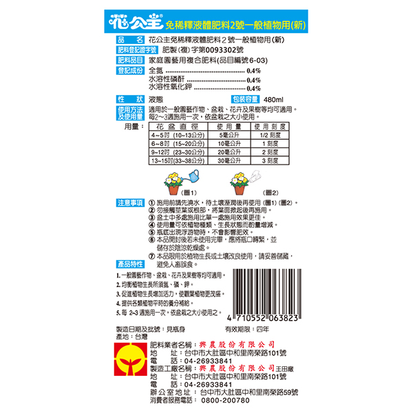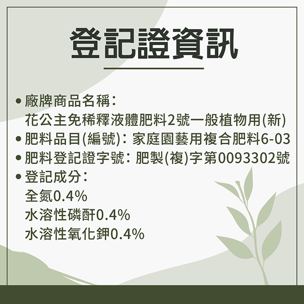 品名: 花公主免稀釋液體肥料2號一般植物用(新)