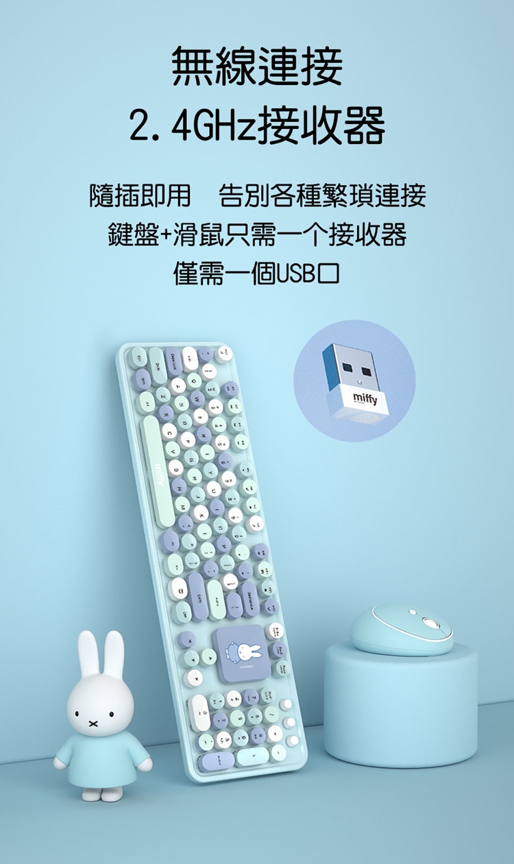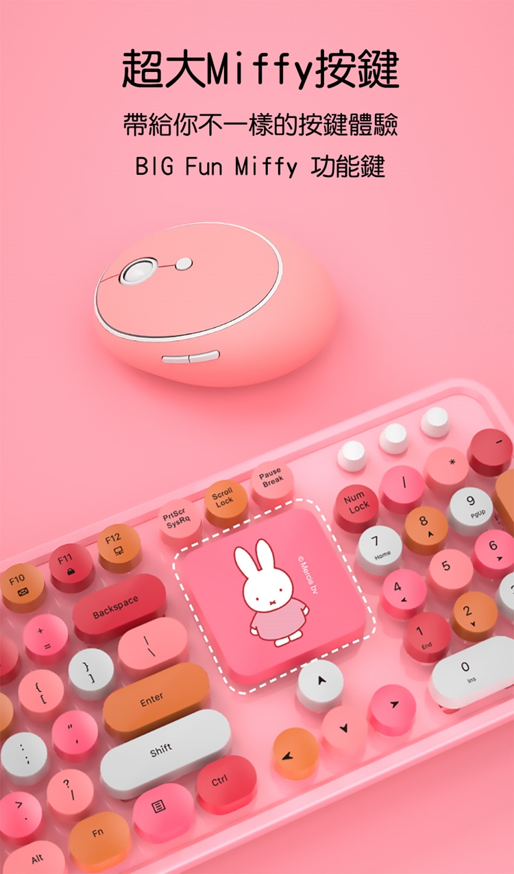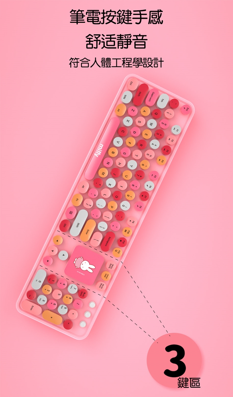 miffy米菲無線三區鍵盤鼠標套裝網紅女生可愛卡通筆記本臺式電腦復古圓鍵家用解壓超大按鍵電競游戲專用MIPOW