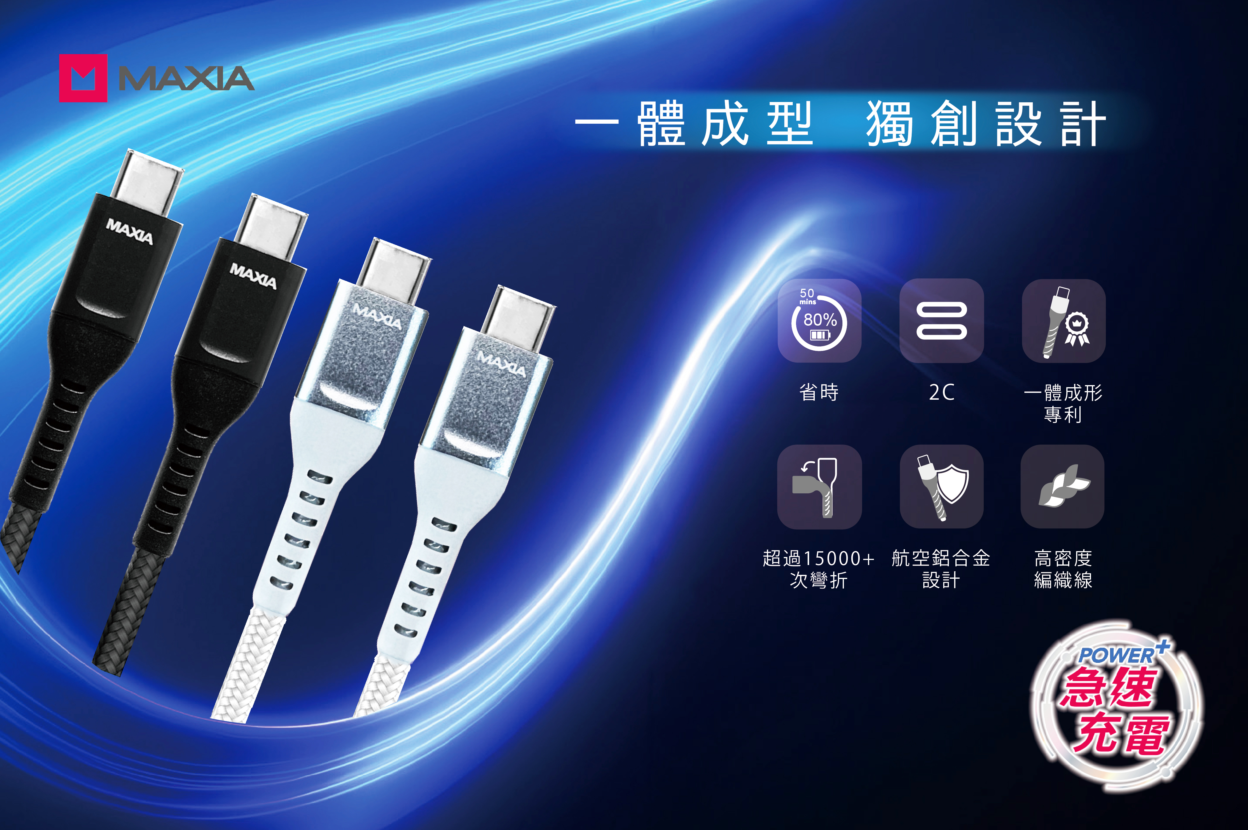 【MAXIA】 Type C to C 編織快充數據線 150cm-白(MQC-310)