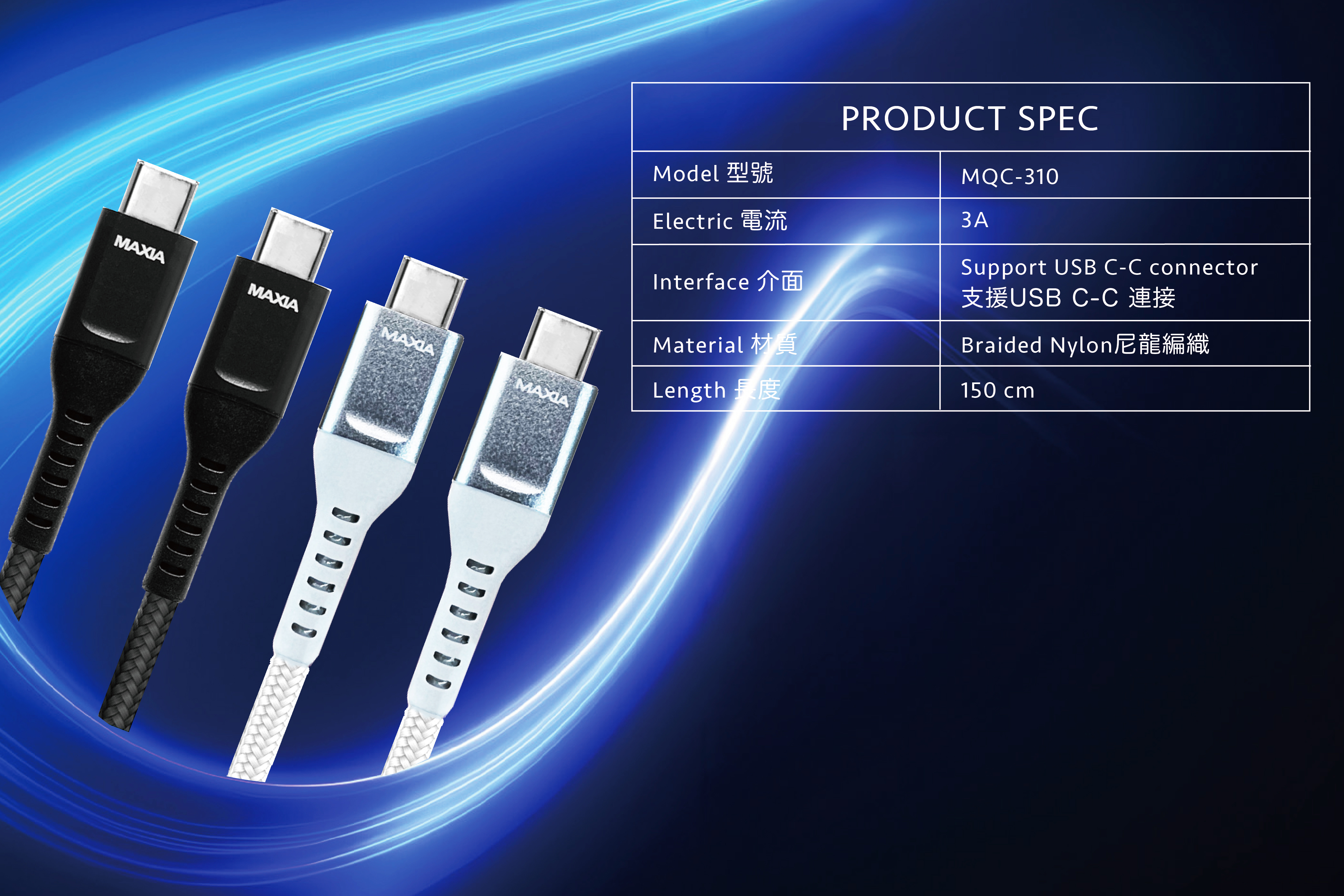 【MAXIA】 Type C to C 編織快充數據線 150cm-黑(MQC-310)