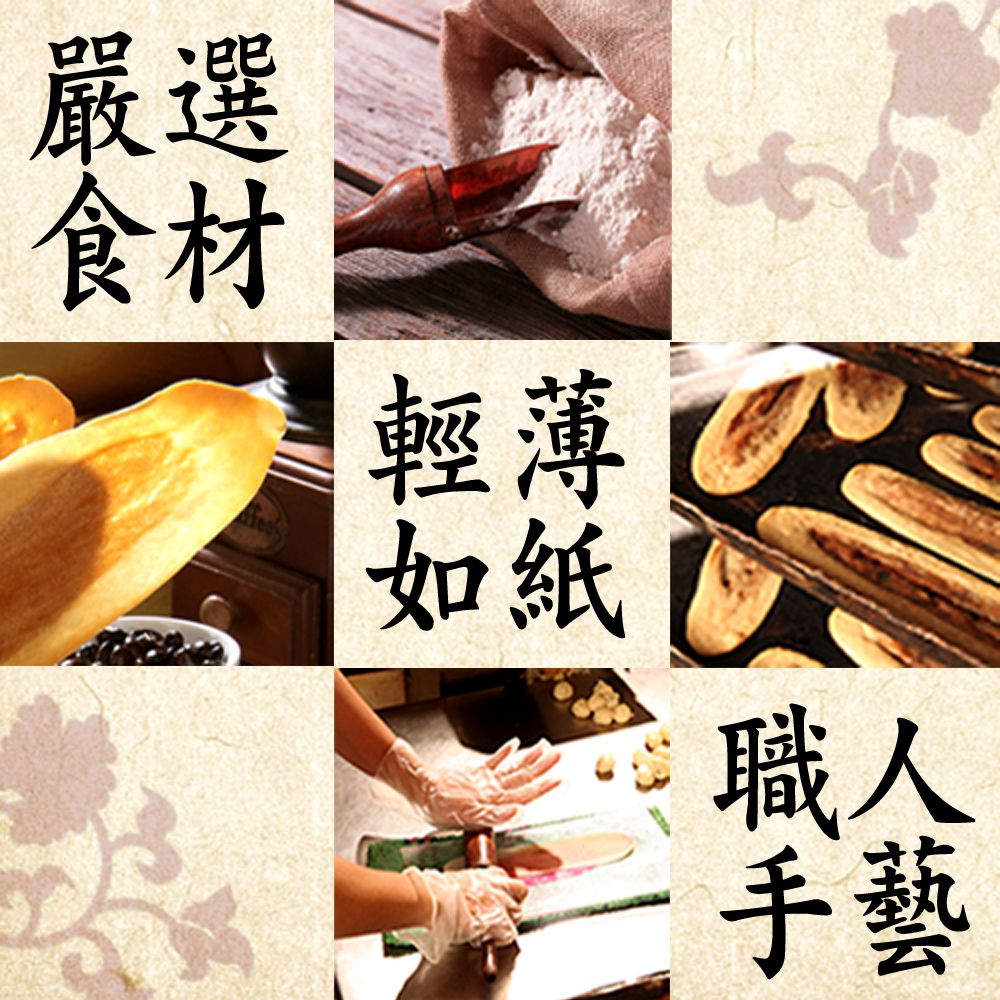 傳承最道地的傳統口味與專業的職人精神,每片手工牛舌餅,都是累積三十的經典傑作。