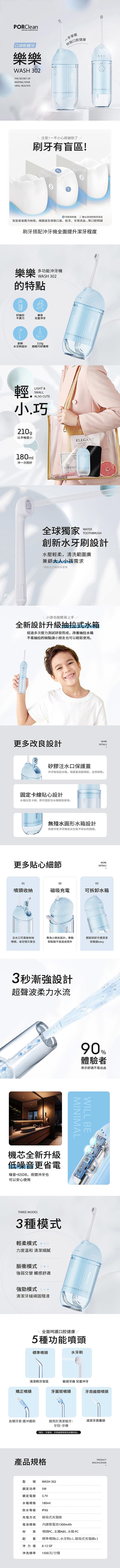 PORClean寶可齡 WASH 302 攜帶型樂樂多功能沖牙機-小粉藍