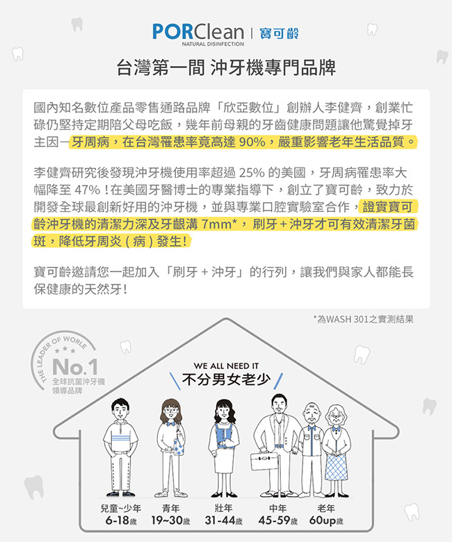 ◆獨家創新水牙刷噴頭,水壓輕柔,清洗範圍廣,兼顧大人小孩需求。