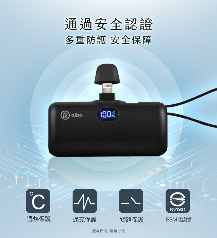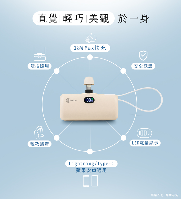 【aibo PD快充 Lightning直插式 行動電源】小巧輕便,方便攜帶,