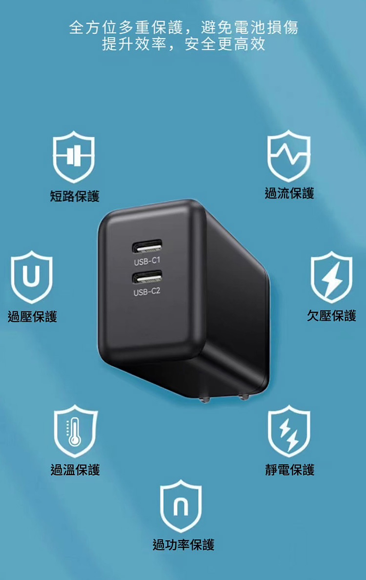 雙USB Type-C快速電源供應器 35W 適用 TYPE-C充電器 PD快速充電器 快充充電頭 快充頭