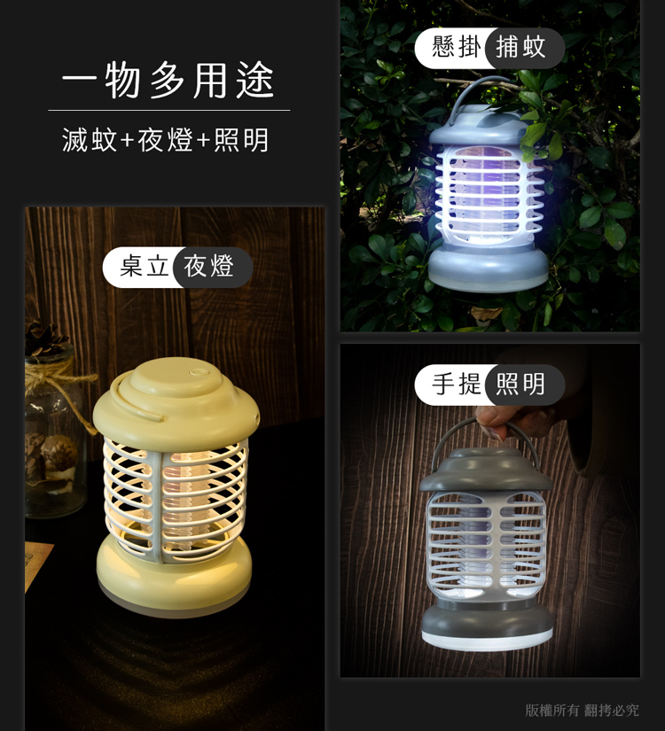『露營手提 電擊+夜燈+照明 3in1充電式行動捕蚊燈』
