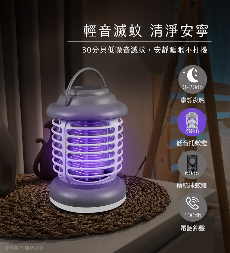 迅速消滅蚊子,30db低音滅蚊設計,夜晚使用不打擾,