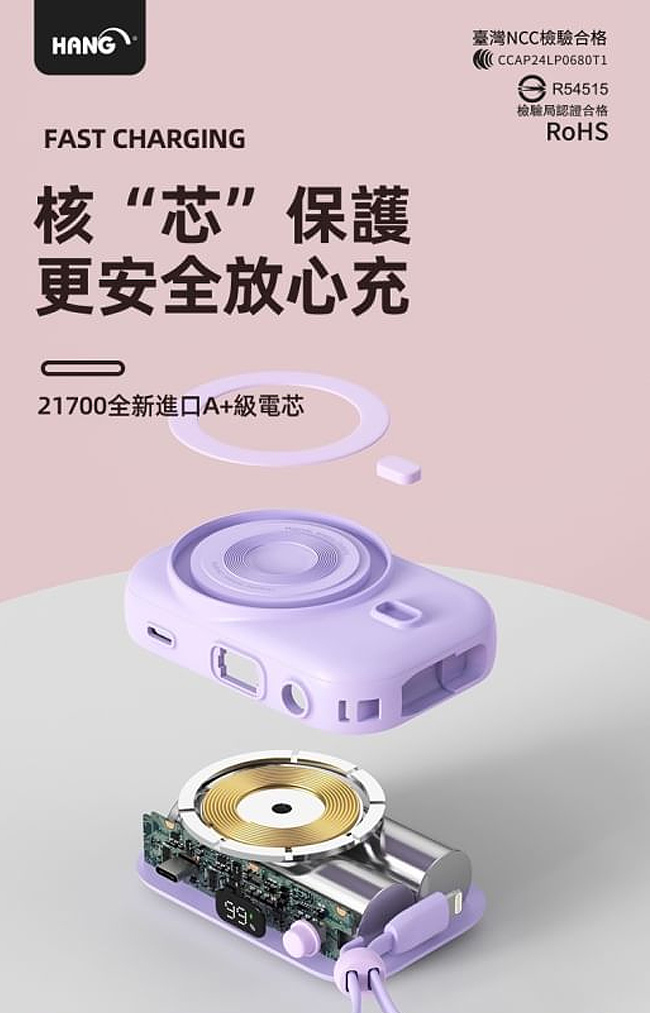 HANG PDC 10000mAh PD20W 無線磁吸自帶線