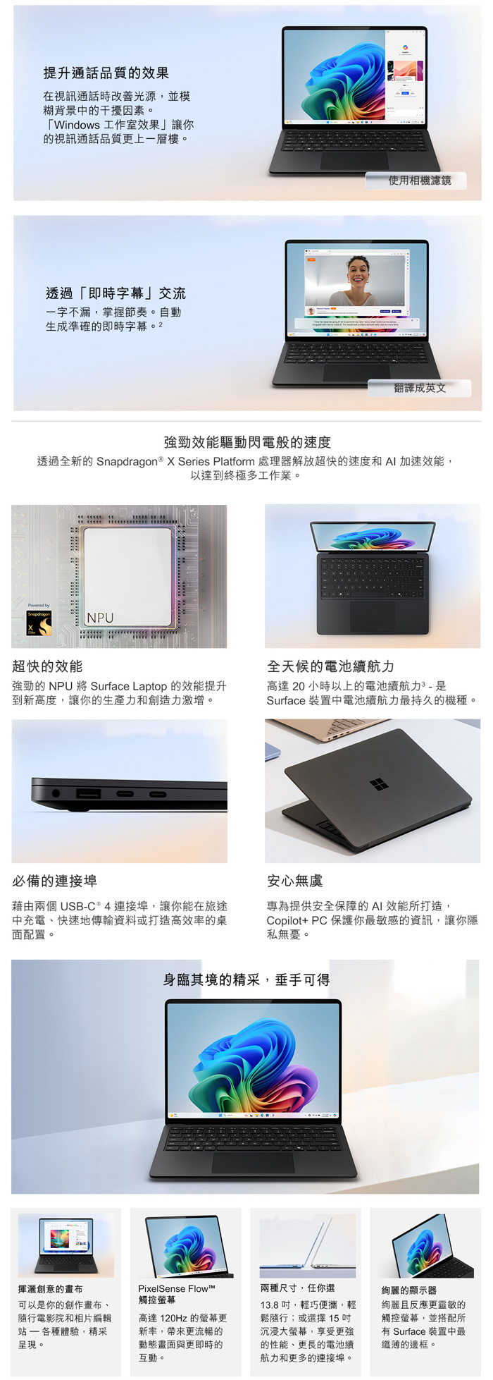Microsoft Surface Laptop 7白/黑(X Elite/16G/512G/13.8吋/W11)觸控
