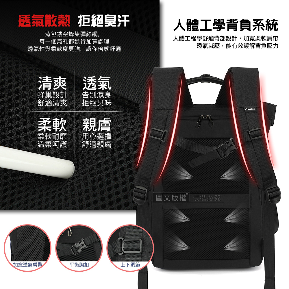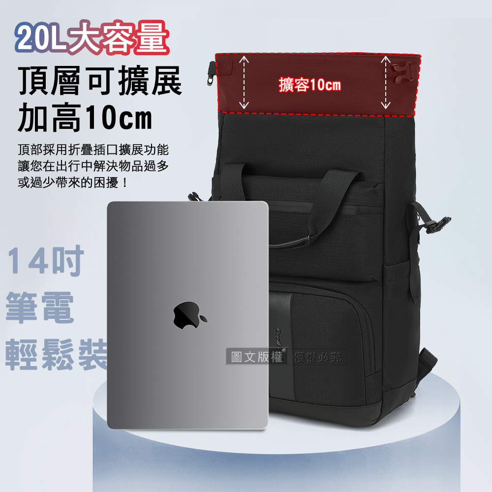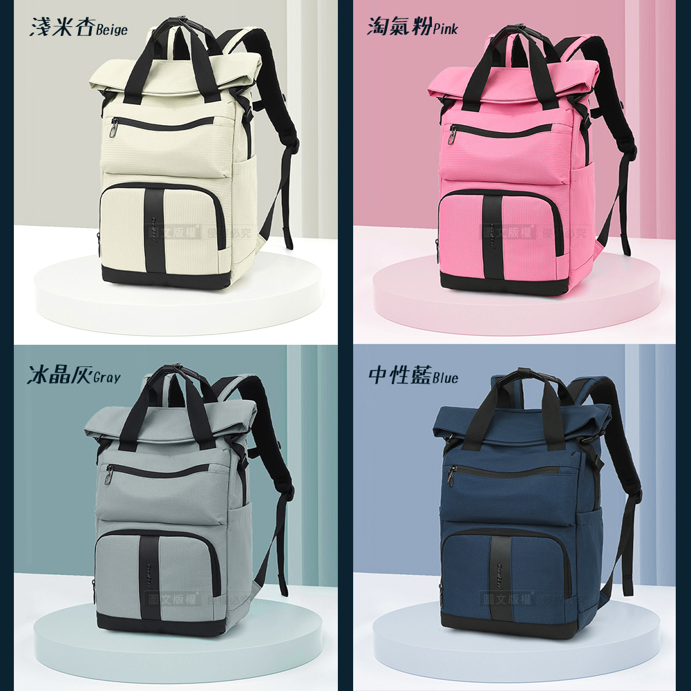甜酷潮流 20L大容量可擴充 清爽透氣蜂巢背墊 亮彩旅行後背包/筆電包/學生包(冰晶灰)