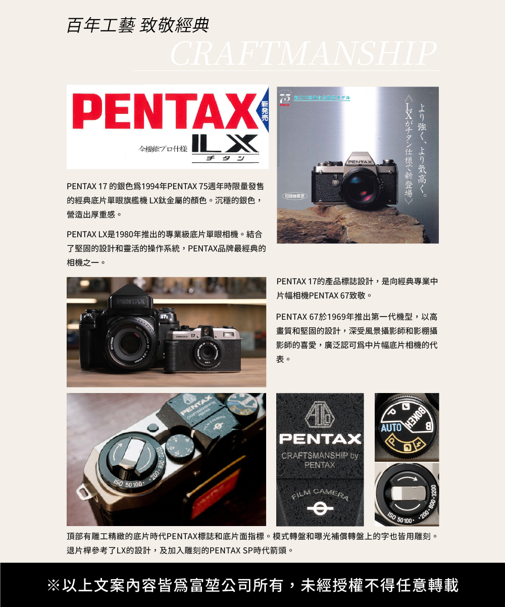 PENTAX 賓得士 17 TKO 親簽 限定版 公司貨(含TENBA小型相機包+隨機彩色負片X1)底
