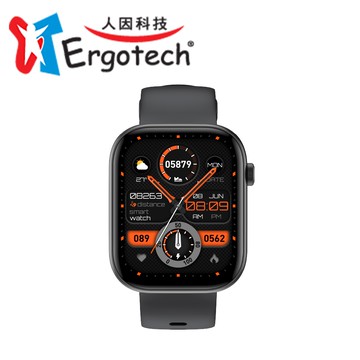 Ergotech 人因科技 SW202 心率智慧監測運動手錶,2.01吋高硬度玻璃鏡面,旋轉按鈕智慧操作錶冠,高精準紅光血氧偵測,心率異常警報,SOS救援通話 曜石黑