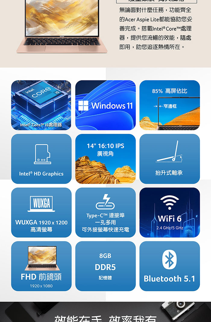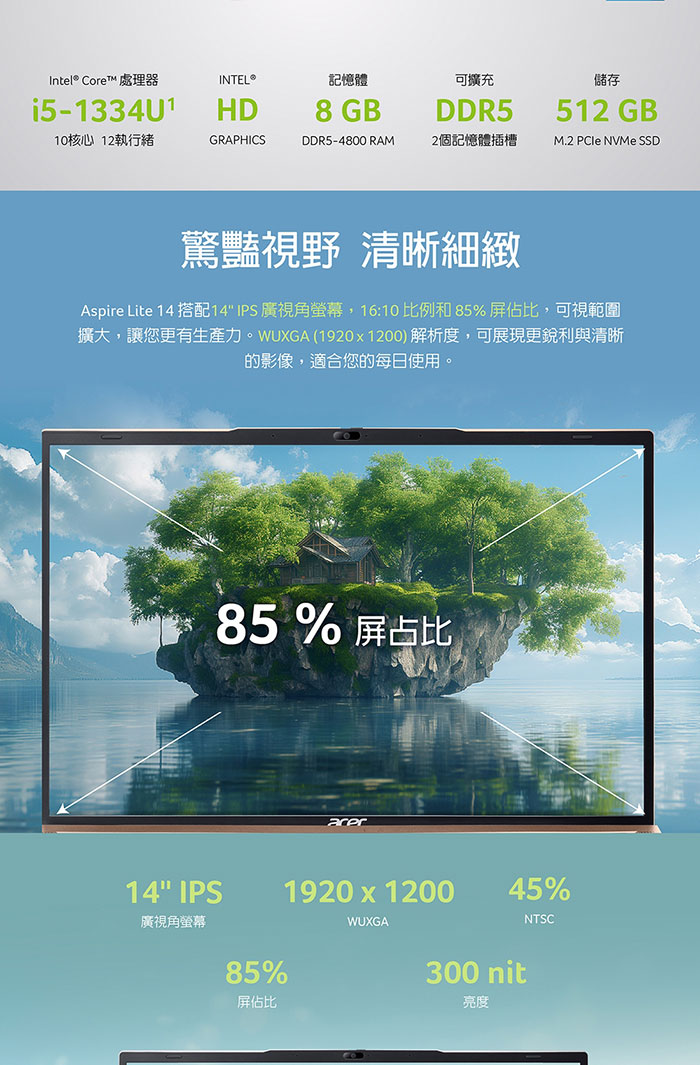 ACER Aspire Lite AL14-52M-528M 金(i5-1334U/8G+16G/512G SSD/14吋WUXGA/W11)特仕