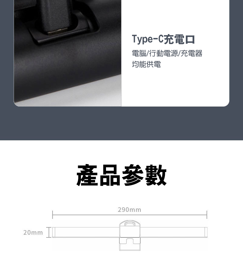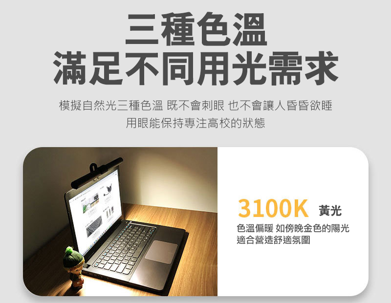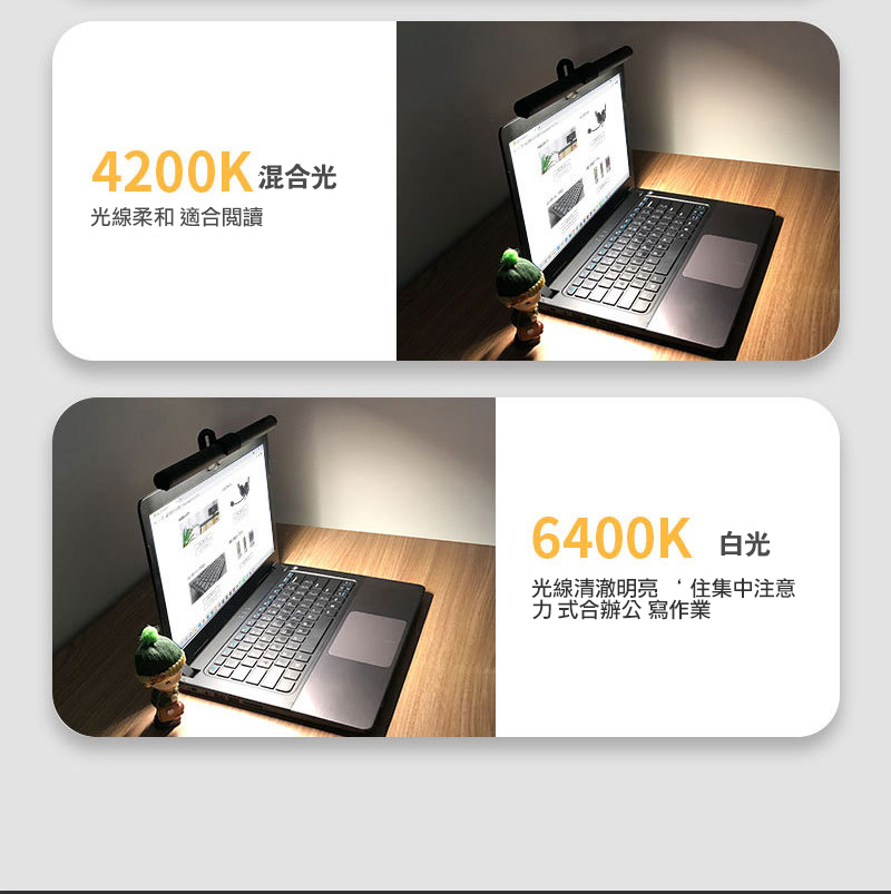 Cooyee|便攜式筆電螢幕 LED 掛燈(29cm) 檯燈 補光燈 非對稱光源 三種色溫 無段數調光