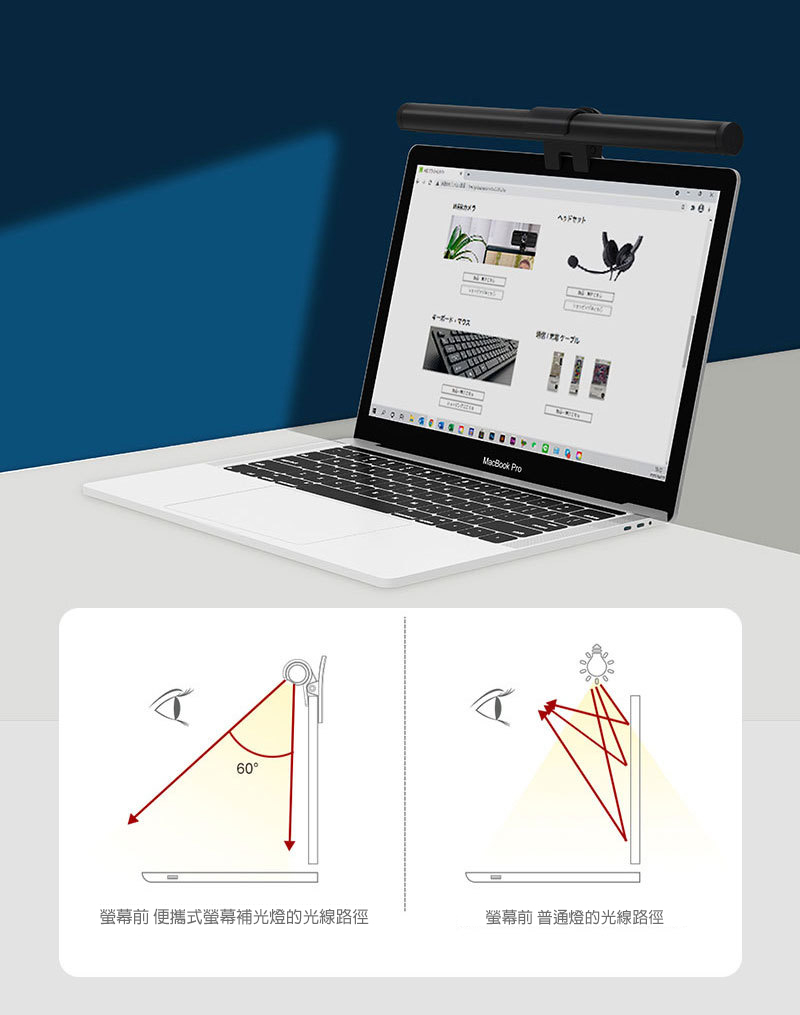 .非對稱光源,只照亮桌面工作與鍵盤區域