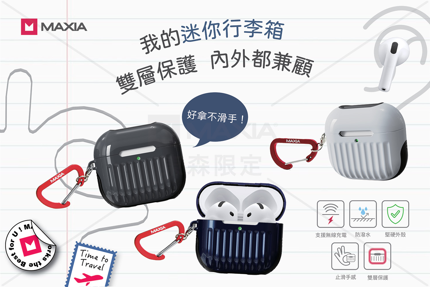 Baseus 倍思 AirPods矽膠保護套裝 附耳機掛繩 紅色 1個