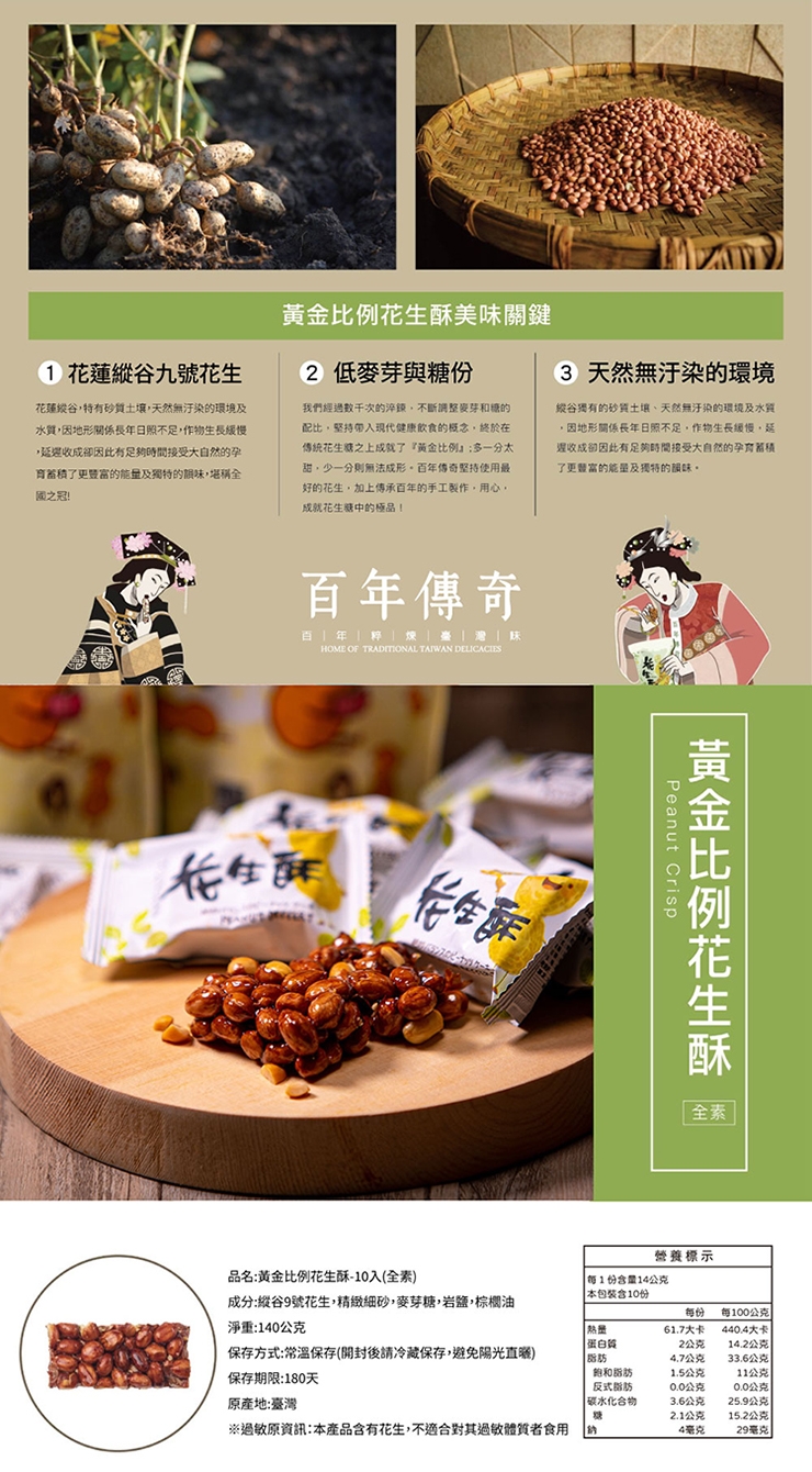百年傳奇 黃金比例花生酥x6袋(140g/袋)