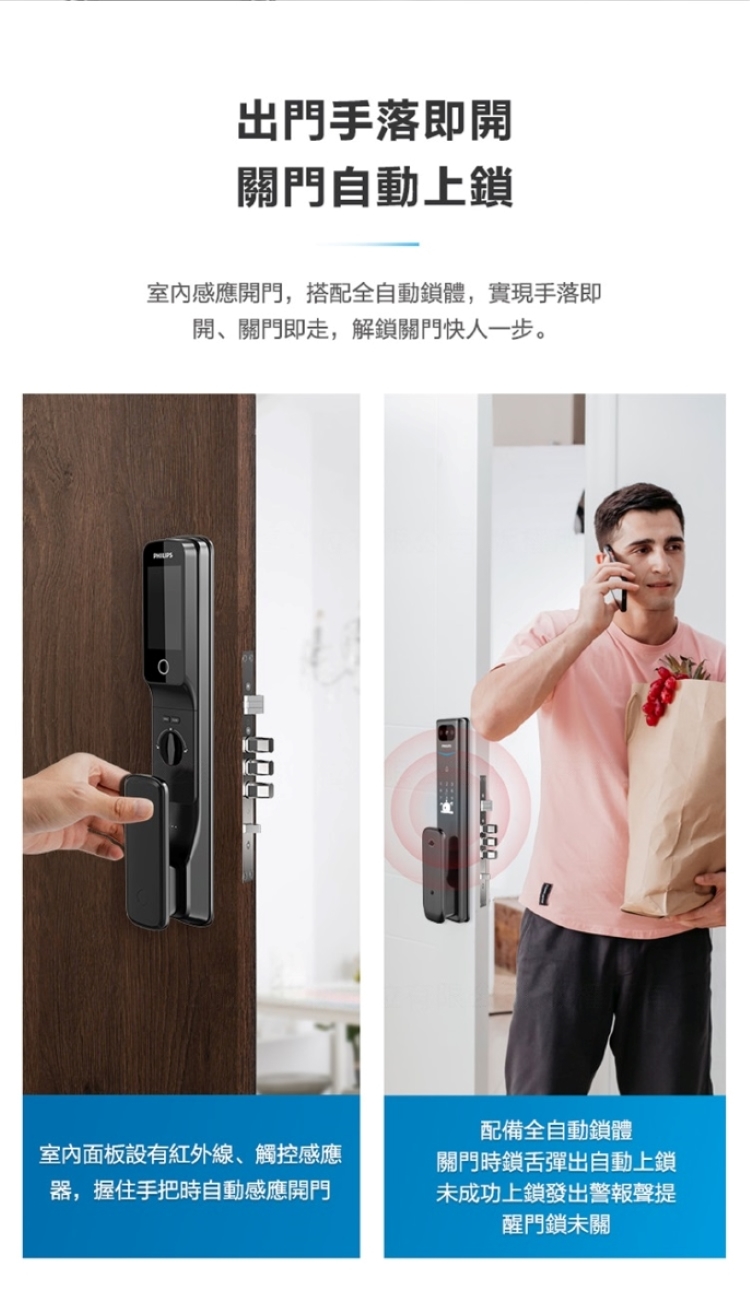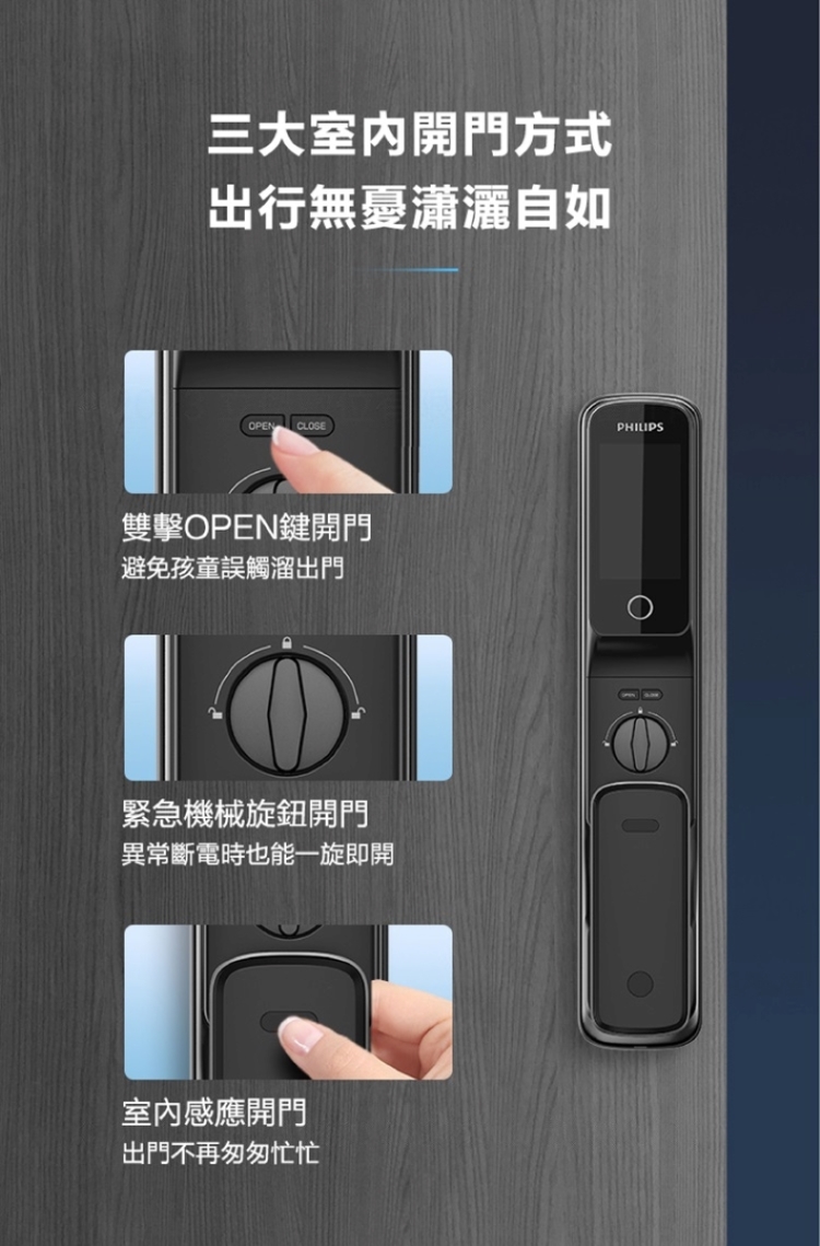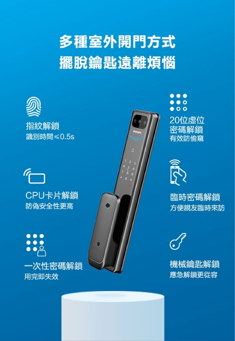 【Philips 飛利浦】702E 五合一推拉式聯網電子鎖(指紋│卡片│密碼│鑰匙│WiFi/含安裝)