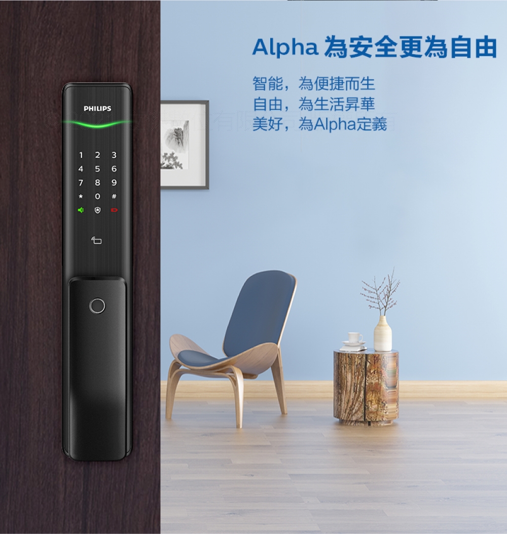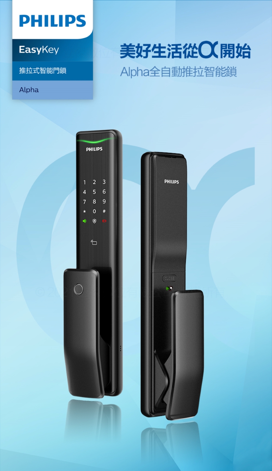 ALPHA 五合一推拉式電子鎖 曜石黑(指紋│卡片│密碼│鑰匙│WIFI/含安裝)