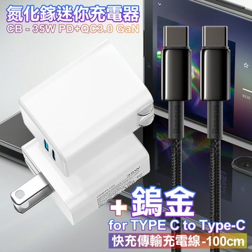 CITY 35W Gan氮化鎵Type-C(PD)+USB快充白+倍思 鎢金100W Type-C to Type-C 快充線-100cm iphone16/15