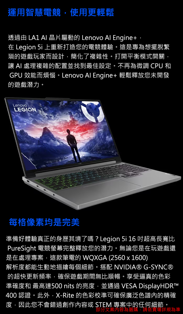 《Lenovo 聯想》Legion 5 83DG00DJTW(16吋WQXGA/i5-13450HX/16G/512G SSD/RTX4050/W11/三年)