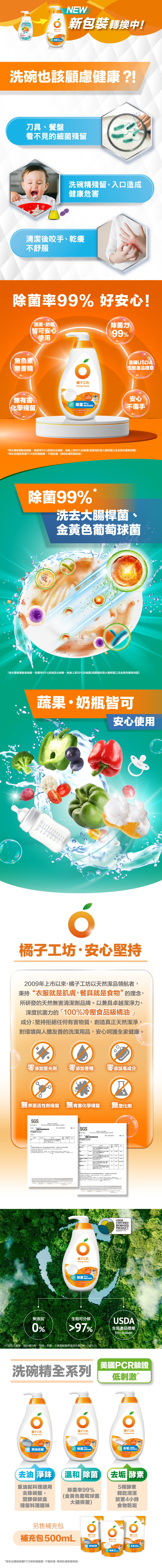 Orange House 橘子工坊 溫和除菌碗盤洗滌液 蔬果奶瓶適用 650ml 1瓶