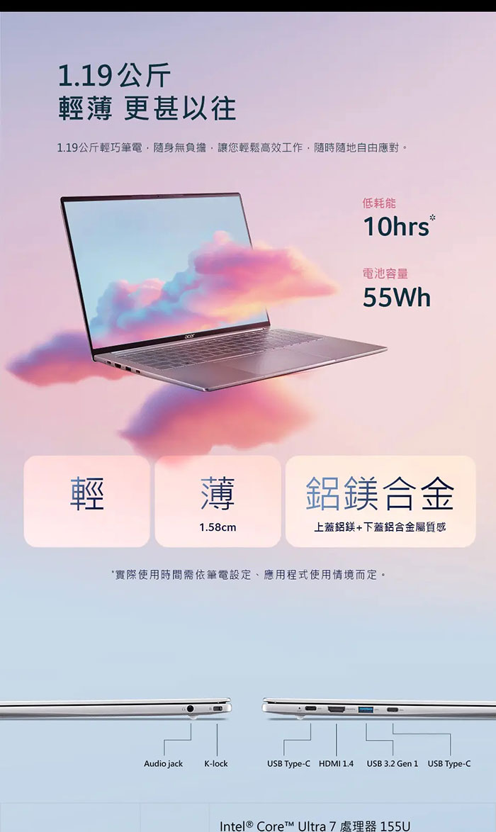 Acer Aspire Lite|AL14-52M-55K2 14吋文書筆電(C5-120U/8G/512G/W11)